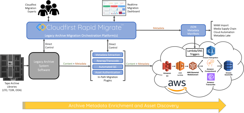 Media2Cloud is available as a free open-source Amazon Cloudformation template, fully deployable in your own AWS account in a matter of minutes. With direct integration to our Archive Migration as a Service (AMaaS) migration orchestration platform Rapid Migrate, Cloudfirst can have you up and running in no time, ready to reap the broad and deep benefits of the cloud.